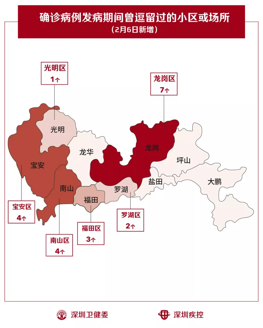 2月6日,疾控專業(yè)人員通過(guò)最新的流行病學(xué)調(diào)查確認(rèn),深圳新增21個(gè)小區(qū)(場(chǎng)所),有新確診的病人在出現(xiàn)病征期間曾經(jīng)逗留。