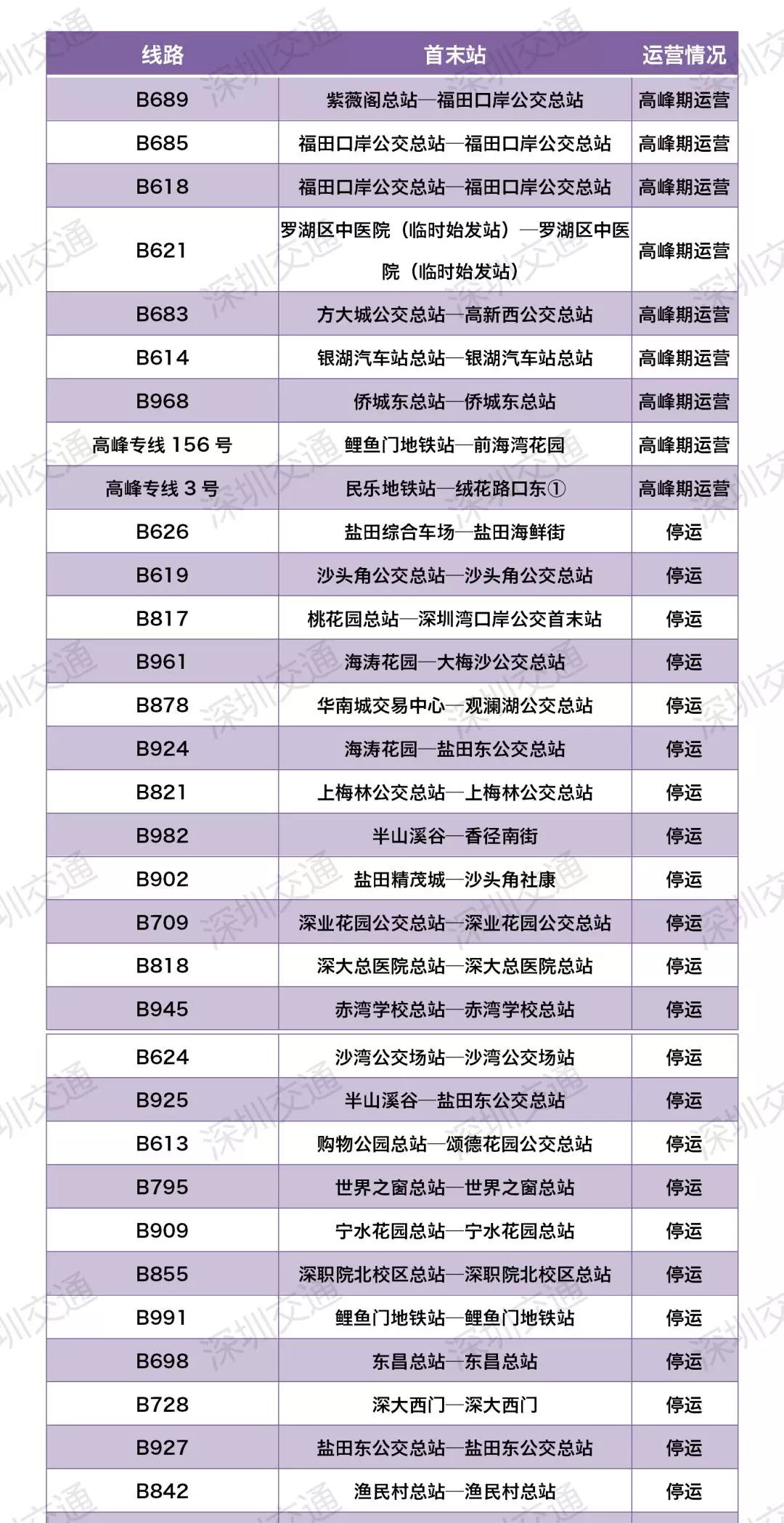 2月10日起,深圳公交線路恢復運營、停運安排來了!