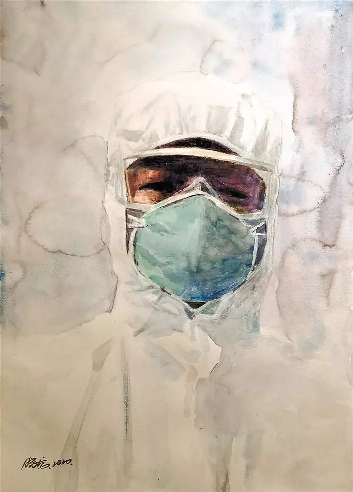 魯文詠在詩(shī)歌《最美的人,你看不見臉》中寫道:“最美的人,你看不見他們的臉。他們的臉被口罩遮著,被護(hù)目鏡遮著,被防護(hù)服遮著,有時(shí),也被夜色遮著。他們?cè)谌巳豪锎┬校诮棺频钠笸哪抗饫锎┬?。他們?lái)了,他們穿過(guò),焦躁的人群就安靜下來(lái)。最美的人,你看不見他們的臉,看不見年齡,甚至性別。是的,天使不計(jì)年齡,天使不分性別?!?/p>