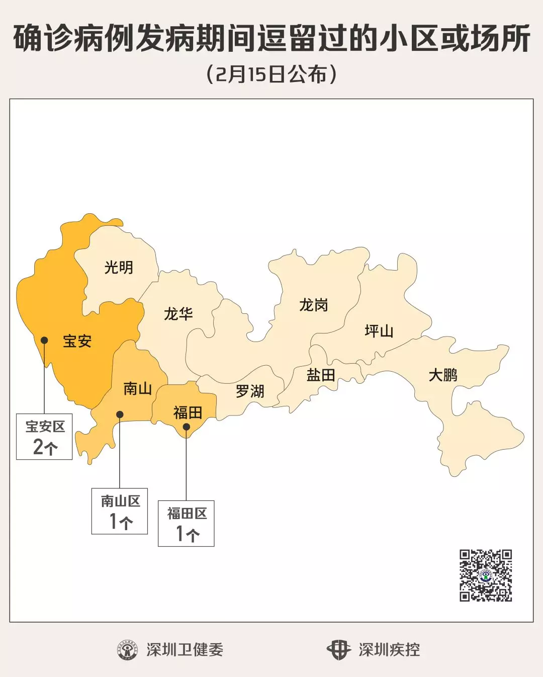 經(jīng)過(guò)疾控專(zhuān)業(yè)人員的流行病學(xué)調(diào)查確認(rèn),2月15日,深圳新公布4個(gè)“涉病”小區(qū)(場(chǎng)所),有新確診的病人在發(fā)病期間曾經(jīng)逗留。
