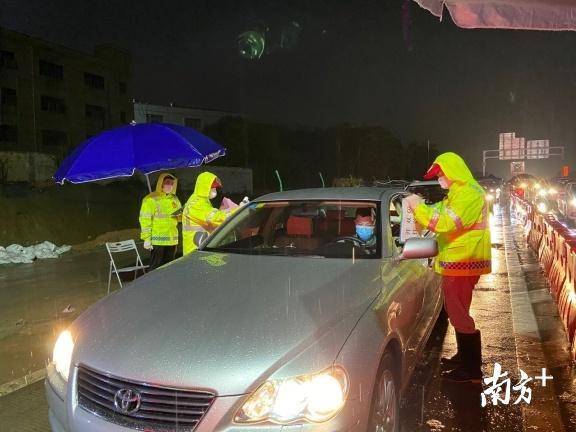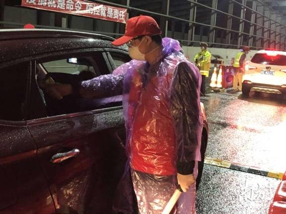 龍城街道黨員干部、工作人員與龍崗區(qū)退役軍人義工隊(duì)、龍崗交警組成防控隊(duì)伍,借助現(xiàn)場(chǎng)高速雨棚的遮擋,對(duì)進(jìn)深車輛一一進(jìn)行排查。