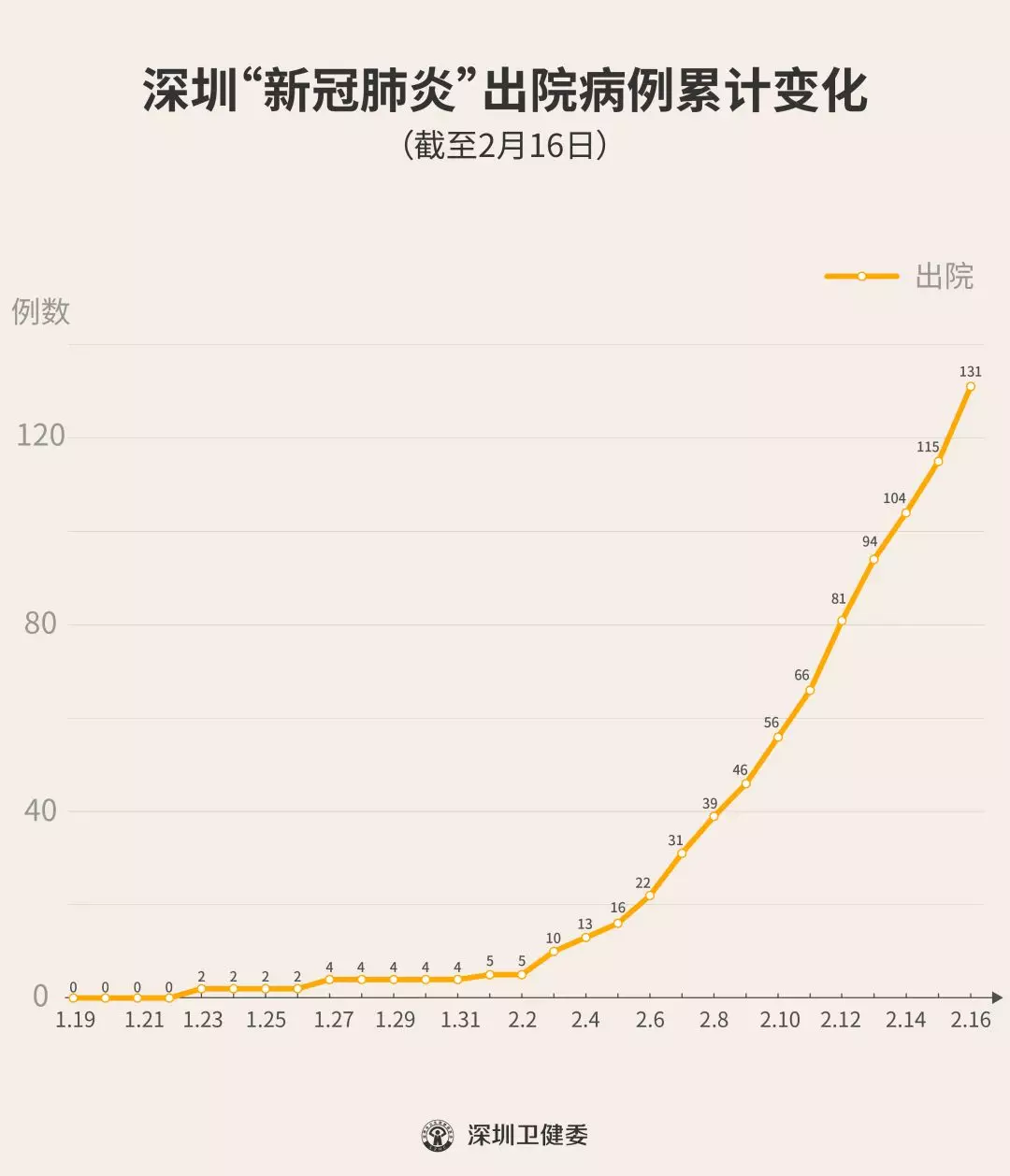 2月16日下午,經(jīng)專家組會診,深圳再有16名新型冠狀病毒肺炎確診患者出院,累計達131人,連續(xù)14天有人出院。