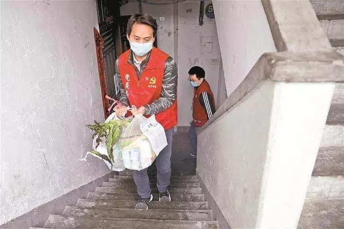 新秀社區(qū)黨員志愿者為居家醫(yī)學(xué)觀察的家庭配送食品物資(深圳晚報記者楊少昆攝)