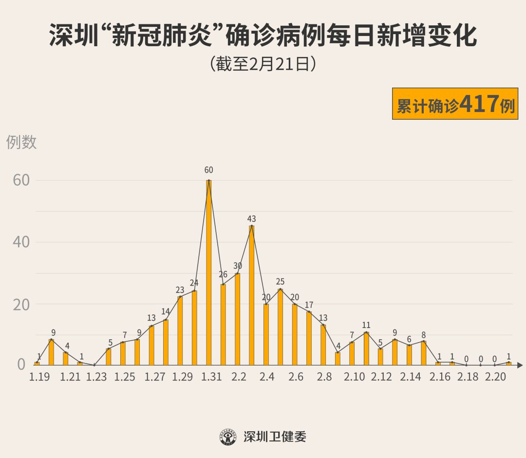 至此,深圳確診人數(shù)417人,出院人數(shù)226人,在院人數(shù)189人。