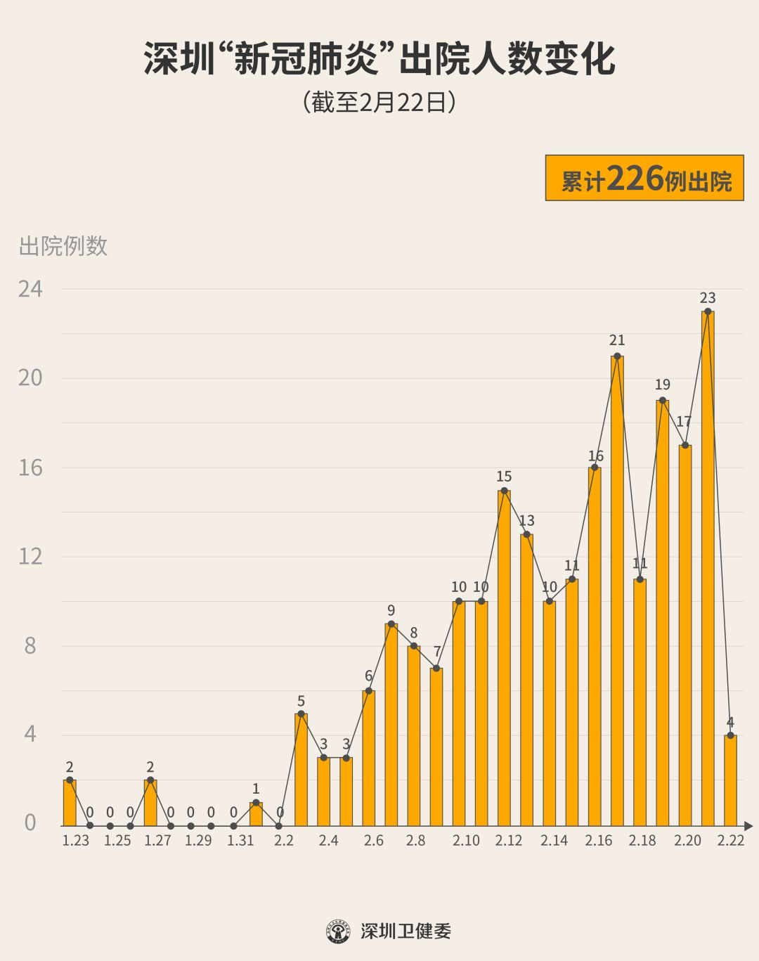 2月22日下午,經(jīng)專(zhuān)家組會(huì)診,深圳再有4名新型冠狀病毒肺炎確診患者出院,累計(jì)達(dá)226人,連續(xù)20天有人出院。
