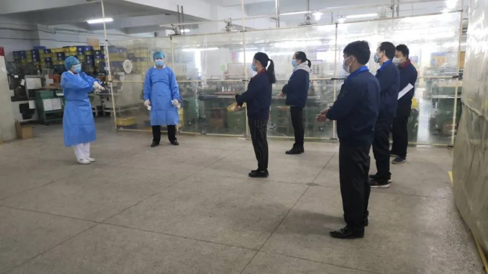 2月22日,同富康社康中心醫(yī)務(wù)人員來(lái)到駐美耐思公司進(jìn)行復(fù)工復(fù)產(chǎn)防疫培訓(xùn)。