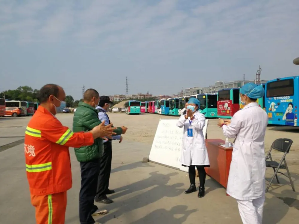 石新社康中心醫(yī)務(wù)人員給西部公汽262車(chē)隊(duì)培訓(xùn)。