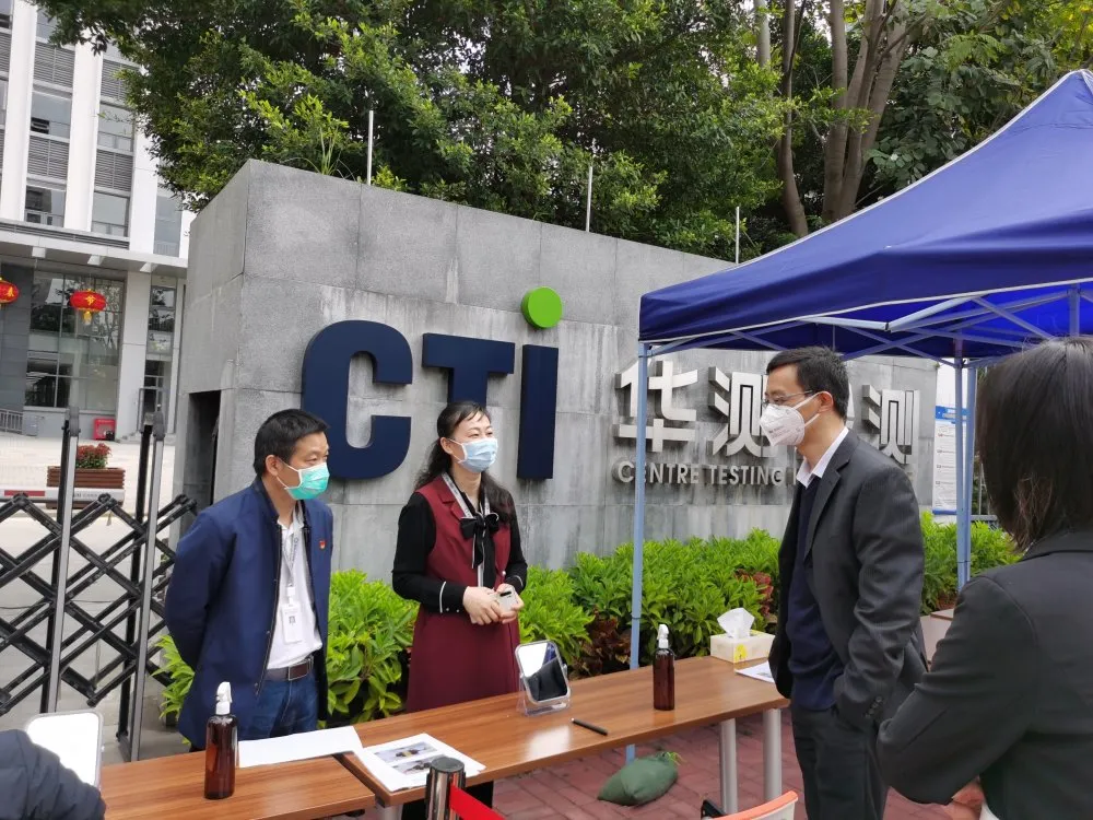 隨后,集團(tuán)社康管理中心負(fù)責(zé)人和興東社康醫(yī)務(wù)人員到社區(qū)內(nèi)的重點(diǎn)企業(yè)——華測(cè)檢測(cè)認(rèn)證集團(tuán)股份有限公司,開(kāi)展復(fù)工復(fù)產(chǎn)防疫工作,指導(dǎo)管理人員學(xué)習(xí)如何正確戴口罩、洗手、測(cè)體溫,口罩回收注意事項(xiàng)、如何避免登記人員信息時(shí)感染等等。