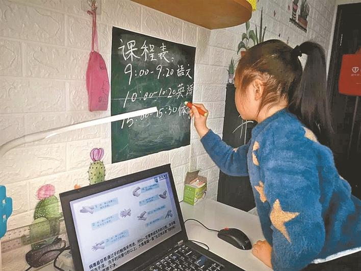 學(xué)生在家上網(wǎng)課。
