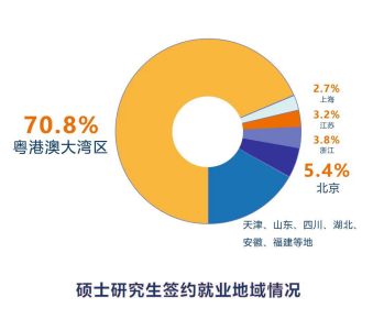 而在碩士研究生的就業(yè)數(shù)據(jù)方面,碩士研究生就業(yè)率達98.8%,四分之三的同學選擇了簽約就業(yè)。錄取畢業(yè)生最多的企業(yè)分別是華為、中興、招商銀行,大多數(shù)畢業(yè)生都留在了粵港澳大灣區(qū)。
