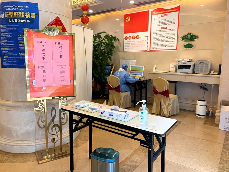 健康驛站入口處的入住指引臺(tái)。