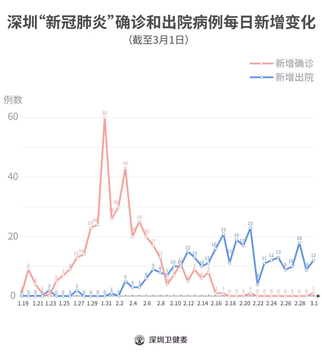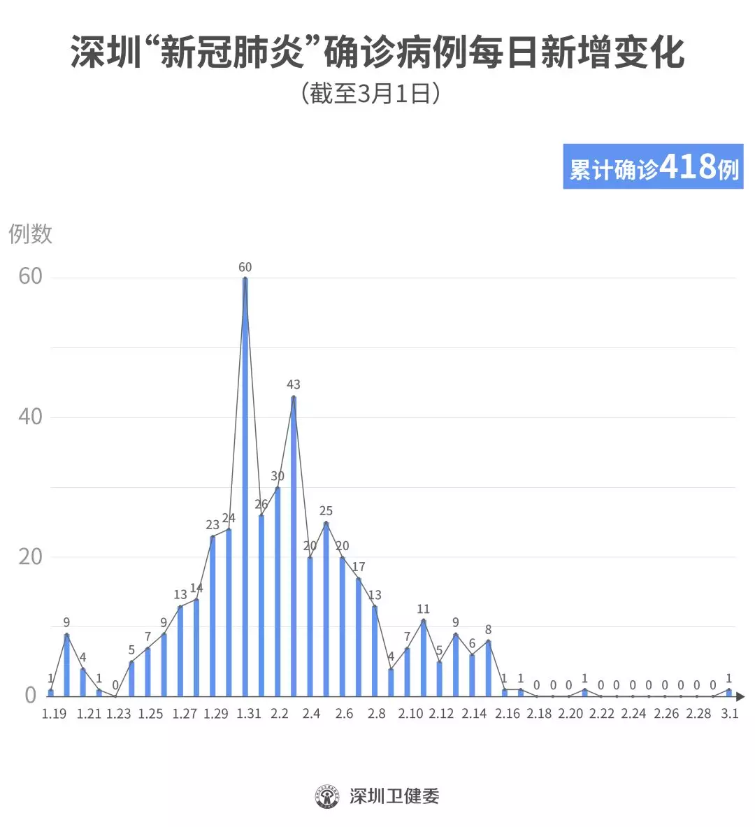 截至3月1日24時,深圳累計報告“新冠肺炎”確診病例418例。3月1日當天全市新增確診病例1例,當天出院病例12例(從2月26日起不再公布出院個案)。 ▲新增出院病例已超過新增確診病例 累計報告確診病例中,男性198例、女性220例。 按照病例管理地區(qū)劃分,南山區(qū)87例、福田區(qū)82例、龍崗區(qū)71例、寶安區(qū)62例、龍華區(qū)34例、羅湖區(qū)32例、光明區(qū)11例、坪山區(qū)7例、鹽田區(qū)6例、大鵬新區(qū)2例、其他(指由機場、車站、碼頭、關(guān)口、路卡等直接送往定點醫(yī)院的)24例。 目前,重癥6例、危重癥2例,死亡3例,累計出院320例。 95例確診病例均在深圳市第三人民醫(yī)院隔離治療。 103密切接觸者正在接受醫(yī)學觀察。 資料來源:深圳市疾控中心、深圳市衛(wèi)健委、廣東省衛(wèi)健委