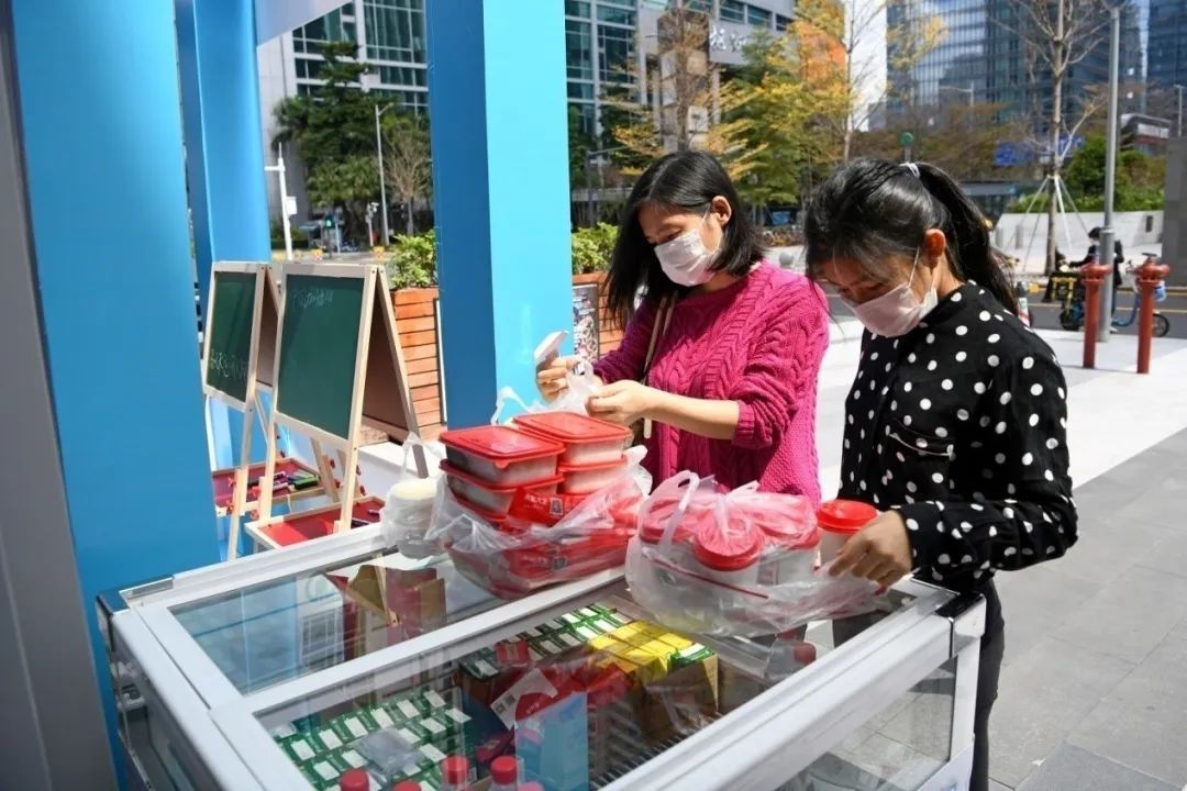 一瓶飲料、一份盒飯、一個口罩,在這個特殊的時期,展示了這個城市的溫暖。(新華社記者 趙瑞希 梁旭 攝)