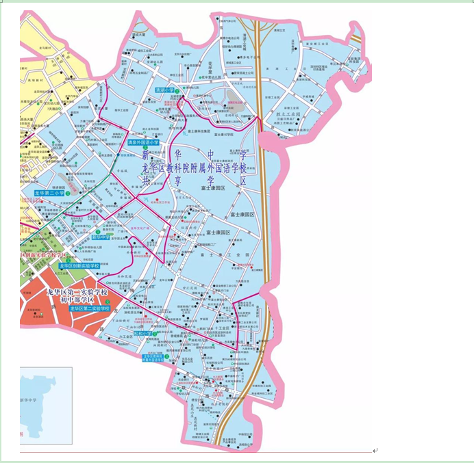 2.初中部與觀瀾第二中學(丹湖居委會、新城居委會、四和居委會)及龍華區(qū)教科院附屬學校初中部共享學區(qū)范圍;丹湖居委會、新城居委會、四和居委會的適齡兒童和少年可選擇申請龍華區(qū)第三外國語學校初中部、觀瀾第二中學其中一所學校學位;福安居委會、悅興圍居委會、瓏門的適齡兒童和少年可選擇申請龍華區(qū)第三外國語學校初中部、龍華區(qū)教科院附屬學校初中部其中一所學校學位。