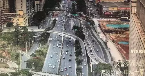 泥崗洪湖立交,泥崗中浩大廈路段,車流逐漸增多。