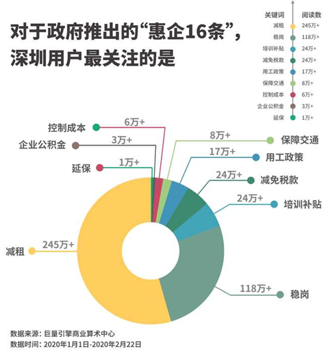 數(shù)據(jù)顯示,減租是“惠企16條”里大家最?lèi)?ài)的詞,達(dá)到245萬(wàn)次以上的閱讀。