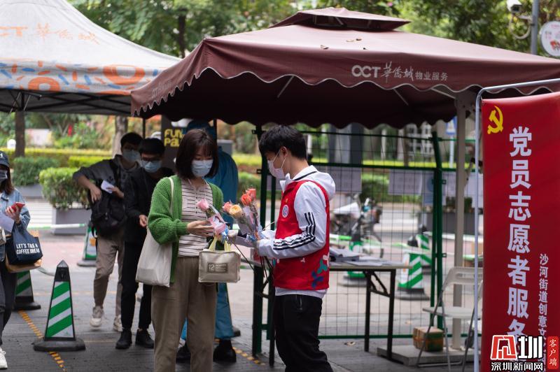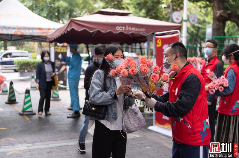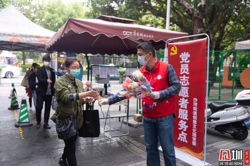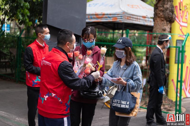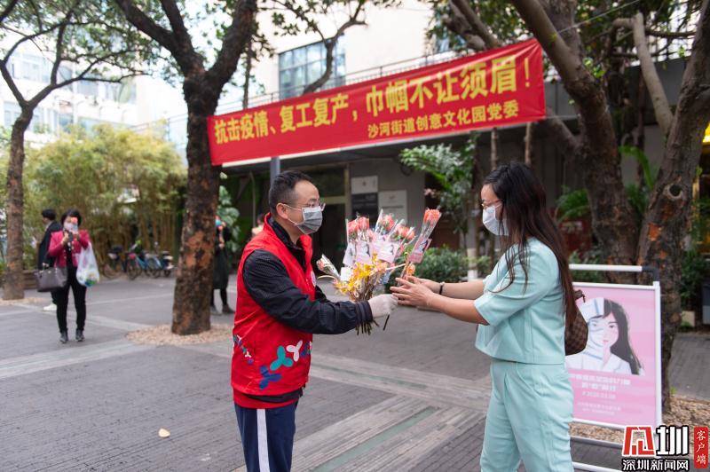 見(jiàn)圳客戶端·深圳新聞網(wǎng)2020年3月6日訊 3月6日上午,春暖花開(kāi),萬(wàn)物更新。華僑城創(chuàng)意文化T街入口,進(jìn)入園區(qū)上班的員工除了接受體溫檢測(cè)、出示入園卡等常規(guī)動(dòng)作外,女員工意外收到了一束鮮花和一張“三八”節(jié)賀卡,賀卡上寫著:帶著溫柔堅(jiān)定的力量抗“疫”前行!這是園區(qū)黨員志愿者對(duì)“抗擊疫情、復(fù)工復(fù)產(chǎn)”中廣大女職工的禮贊。