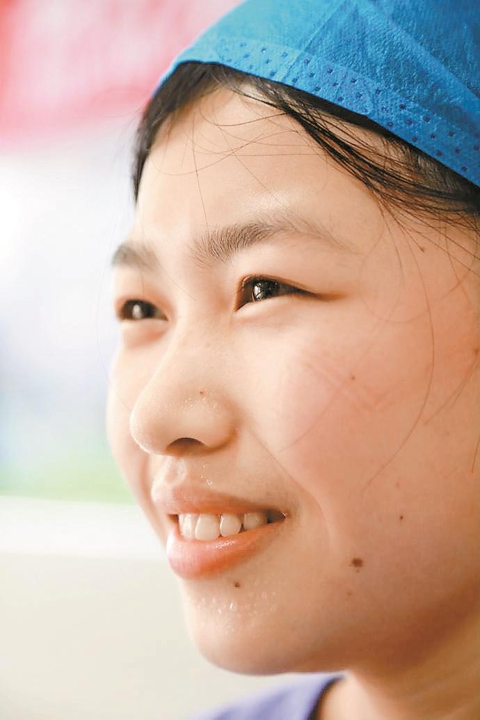 黃青青性格開朗,適應(yīng)能力強(qiáng),她平時(shí)不愛吃的胡蘿卜、包菜等食物,但到了一線再也不挑食了。身材瘦弱的她在忙碌十多天后有些消瘦,但她總是打趣道:“別看我瘦,力量可大著呢!”協(xié)助病人翻身,耐心為病人喂飯,只要病人需要的,她都會盡自己的全力做好,病區(qū)的病人也為她豎起大拇指。
