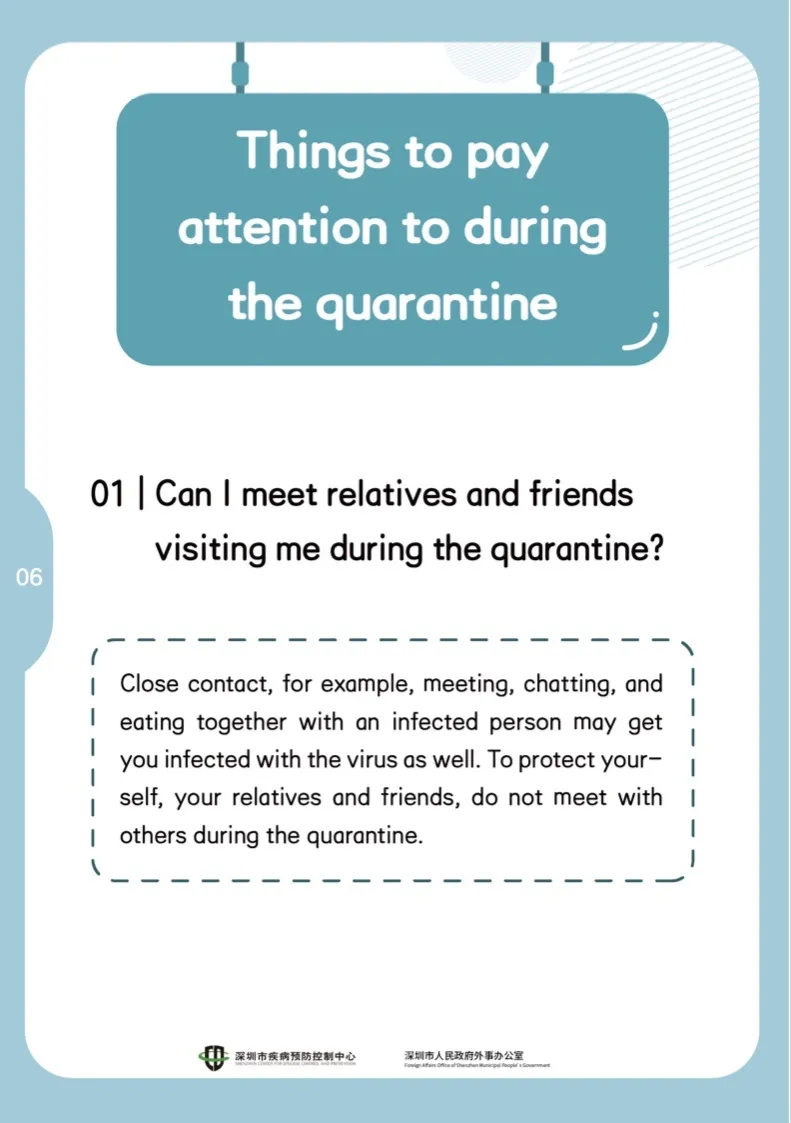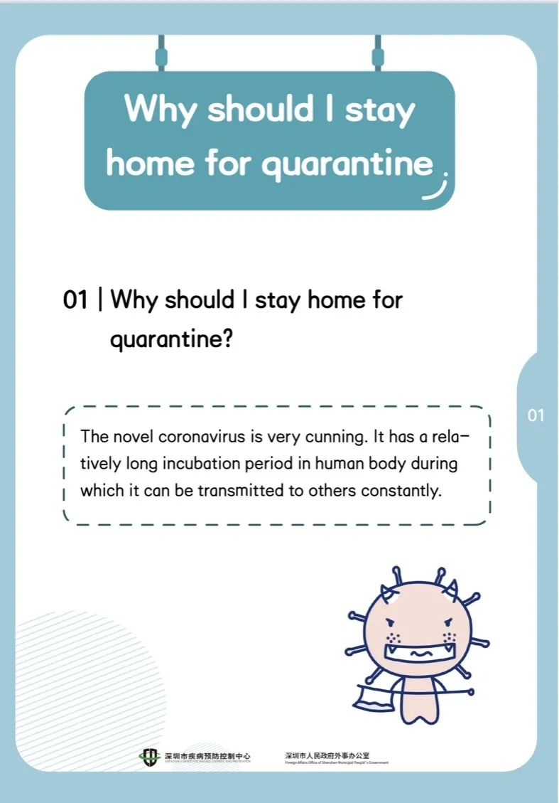 因此,為了您和家人健康,從疫情高發(fā)重點地區(qū)來深返深后,應當進行14天居家隔離,以確認沒有感染病毒。在這非常時期,做好居家隔離既是對您自己和家人最好的保護,也是為疫情早日結束做貢獻。