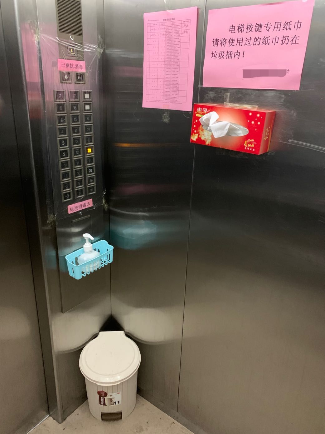 建議盡量避免乘坐廂式電梯,乘坐時(shí)應(yīng)當(dāng)佩戴口罩。廂式電梯的地面、側(cè)壁應(yīng)當(dāng)保持清潔,每日消毒2次。電梯按鈕、自動(dòng)扶梯扶手等經(jīng)常接觸部位每日消毒應(yīng)當(dāng)不少于3次。
