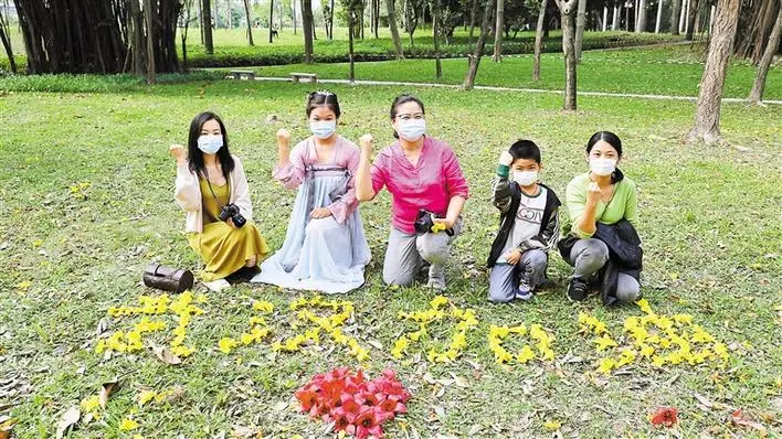 攝影愛好者李女士,趁著百花盛開的季節(jié)到公園攝影,見到小朋友正在用花瓣擺字,便上前助力。喜歡漢服文化的林小姐也一同上前,大家的踴躍參與感染了身為湖北人的記者,在眾人的努力下,最終完成這幅“花字”,共同為武漢加油。