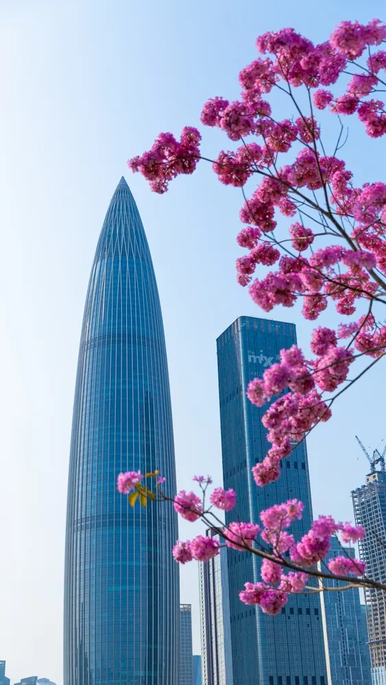 市民們紛紛拿起手上的長槍短炮,以深圳藍(lán)為背景,記錄下春日美景。