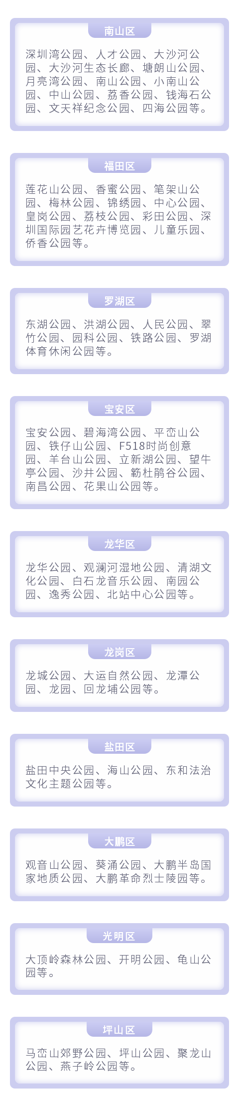 深圳已經(jīng)開放的公園名單