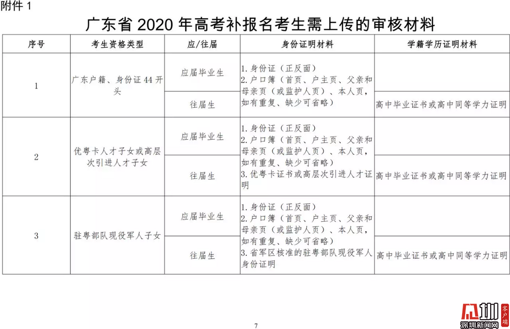 見圳客戶端·深圳新聞網(wǎng)2020年3月19日訊(見圳客戶端、深圳新聞網(wǎng)記者 金洪竹)3月18日,記者從廣東省招生委員會辦公室獲悉,為滿足退伍軍人、運動訓練及武術(shù)與民族傳統(tǒng)體育考生、高職院校自主招生考生等符合我省高考條件,因各種原因尚未參加高考報名人員的需求,經(jīng)研究決定安排一次高考補報名,補報名時間為3月23-26日。同時,為確??忌涂荚嚬ぷ魅藛T的生命安全和身體健康,減少聚集,本次高考補報名采取先線上辦理、后補驗材料的方式進行。