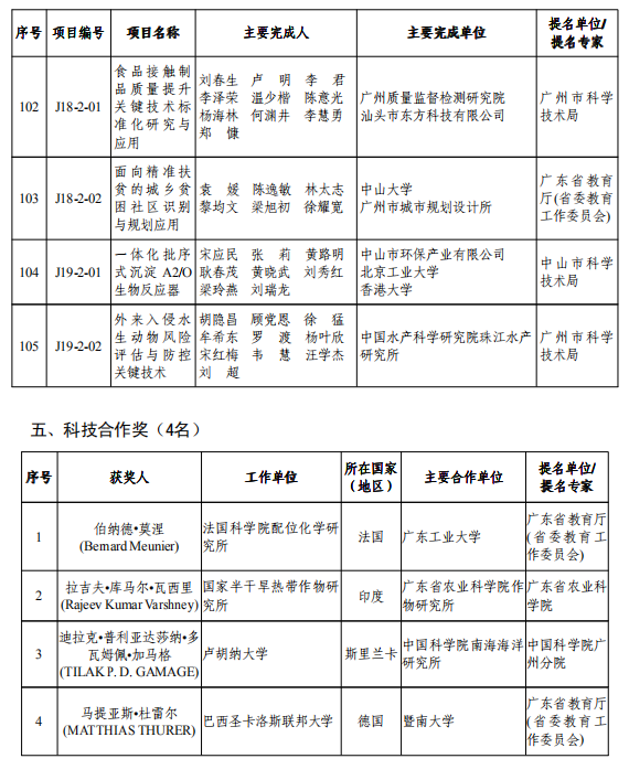 此外,授予伯納德·莫涅、拉吉夫·庫馬爾·瓦西里、迪拉克·普利亞達(dá)莎納·多瓦姆佩·加馬格、馬提亞斯·杜雷爾4名專家科技合作獎。