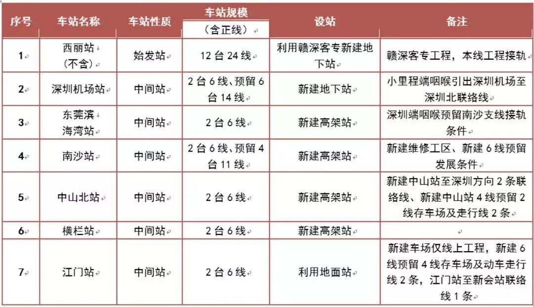 西麗至南沙段200km全線設(shè)西麗、深圳機(jī)場、東莞濱海灣、南沙、中山北、橫欄、江門等7座車站。