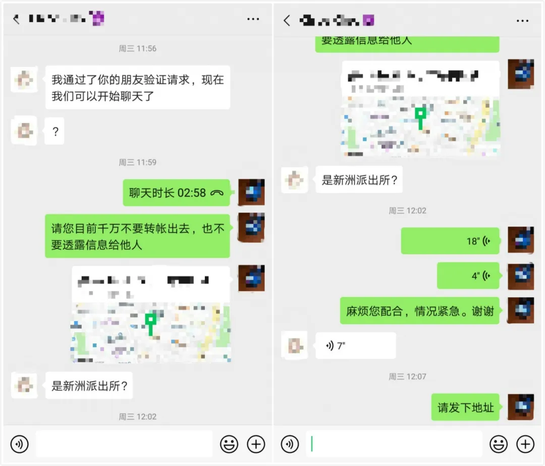 福保派出所巡邏民警鄧振龍、社區(qū)民警崔明海立即出警,到達(dá)事主的居住地后,發(fā)現(xiàn)事主李女士并不在家,無(wú)法進(jìn)行當(dāng)面勸阻;與此同時(shí),由于事主被詐騙團(tuán)伙“洗腦”得很徹底,在民警林振明和劉鵬飛撥打事主電話進(jìn)行勸阻時(shí),卻被事主李女士誤以為民警才是騙子,在多次與事主電話溝通后,事主李女士居然將派出所民警的電話拉入黑名單,反詐勸阻行動(dòng)一度陷入僵局。