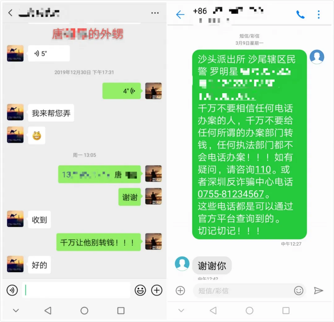 “有些事主被騙子‘洗腦’后,電話里表示相信我們,但是轉(zhuǎn)頭又去給騙子轉(zhuǎn)錢了。徐女士不在深圳,所以我們?yōu)榱舜_保她真的擺脫騙局,又讓她丈夫給她打電話,還讓房東幫忙撥通視頻通話,我一點(diǎn)點(diǎn)給她講解騙子的詐騙手段,她這才幡然醒悟,沒(méi)有給騙子轉(zhuǎn)錢?!鼻浼t鈺說(shuō)道。