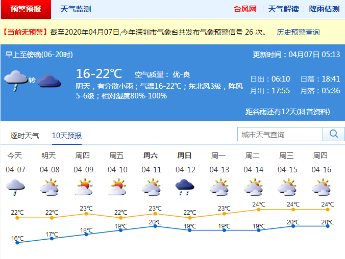 市氣象專家解釋稱,大家感覺冷,主要是此次冷空氣配合降雨。雖然清明節(jié)冷空氣不強,但它南下深圳時,結(jié)合暖濕氣流下雨,體感就會比較冷。6日白天一直在下雨,最低氣溫在15℃左右,氣溫一直升不上去。