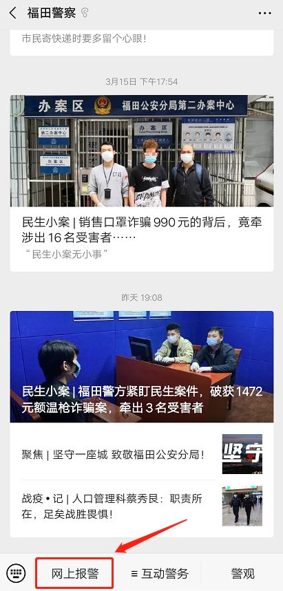 點擊“網(wǎng)上報警”菜單欄