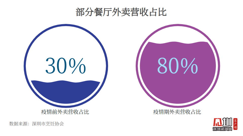 大秦小宴、云海肴……深圳餐飲行業(yè)靠外賣實(shí)現(xiàn)“突圍”。根據(jù)深圳市烹飪協(xié)會(huì)的數(shù)據(jù),在疫情期間,部分餐飲店的外賣營(yíng)收額占比增長(zhǎng)了200%,一些過去不提供外賣服務(wù)的商家,如傳統(tǒng)大酒樓、米其林餐廳、五星級(jí)酒店等,為了創(chuàng)收,也加入到了外賣平臺(tái)?!耙郧巴赓u營(yíng)收能占總收入30%就算不錯(cuò)的,疫情期部份餐廳已經(jīng)占到收入的80%甚至90%?!鄙钲谑信腼儏f(xié)會(huì)常務(wù)副會(huì)長(zhǎng)劉永忠介紹。