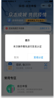 ①在首頁開學專區(qū)點擊“學生登記”,若家長之前未進行自主申報和實名認證,系統將彈出提示,請家長本人先完成自主申報和實名認證。