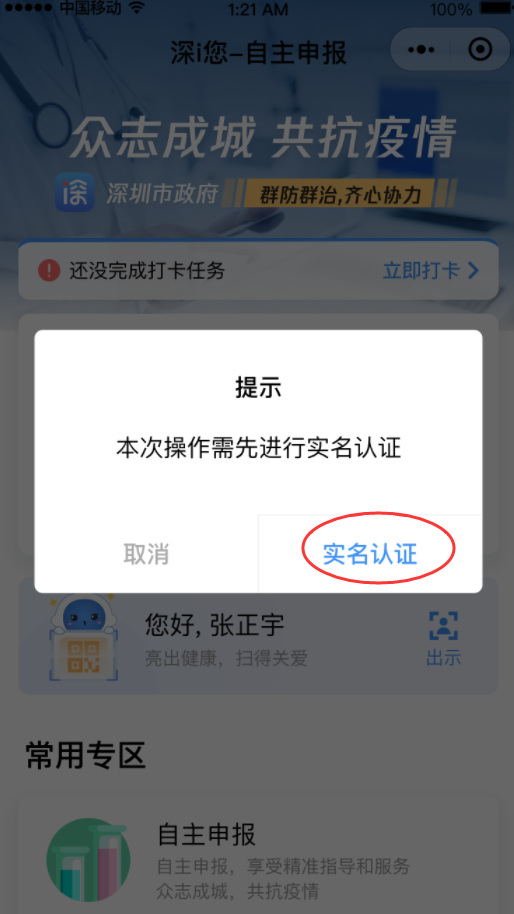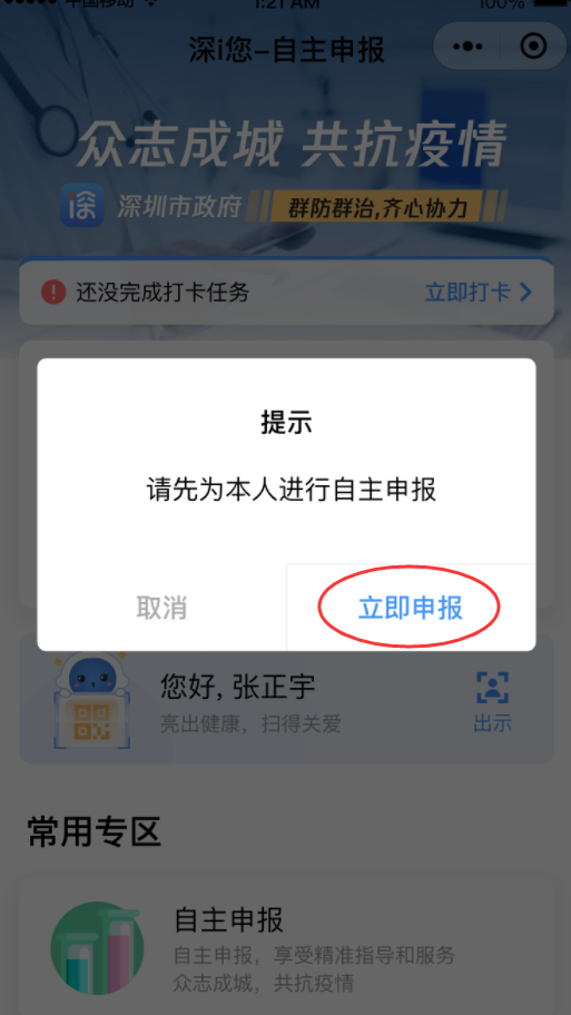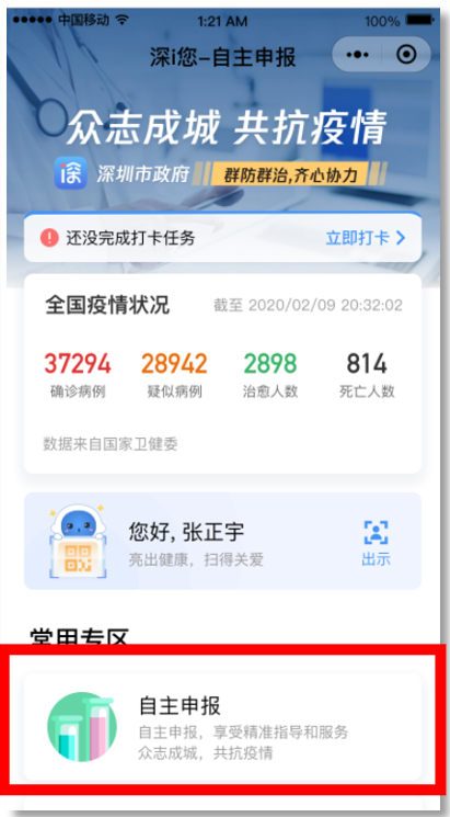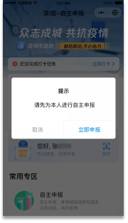 第二步:點擊底部菜單欄“健康申報”-“深i您”進入申報系統。