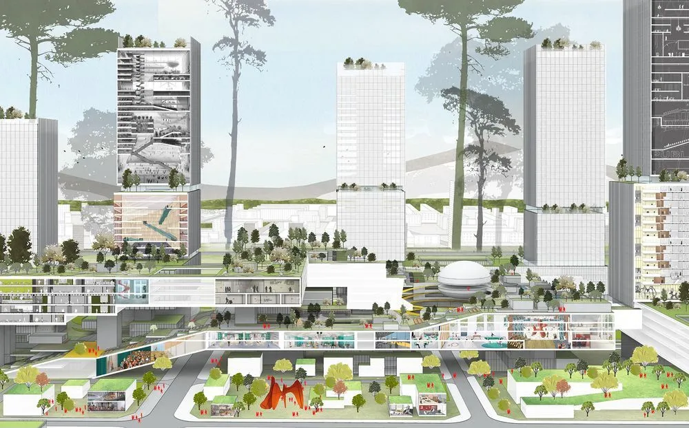 南山科技創(chuàng)新中心,一個以“產(chǎn)業(yè)生態(tài)雨林”為概念的產(chǎn)業(yè)園區(qū),由HPP、深圳市建筑設(shè)計(jì)研究總院(SZAD)、AREP共同設(shè)計(jì)。