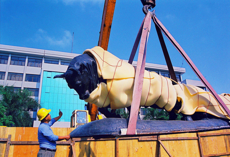 1999年2月6日,深圳“孺子?!钡袼苓w移到深圳市委大院門前。(組圖)(攝影:韋建誠(chéng))