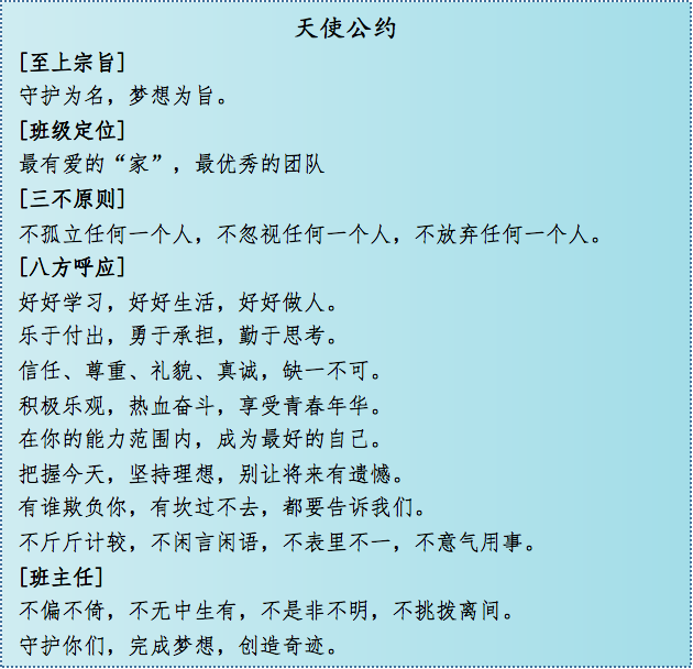 詹老師所帶班級嚴格遵守著“公約精神”,創(chuàng)造了一個個驚喜:2015級14班在藝術季班級文化設計中是全校唯一全員參與的班級;2016級8班在跳繩比賽中從練習時的倒數(shù)第一到復賽逆襲闖進決賽獲得一等獎;2017級9班在疫情網(wǎng)課期間堅持每科作業(yè)“今日事今日畢”,無一人掉隊。