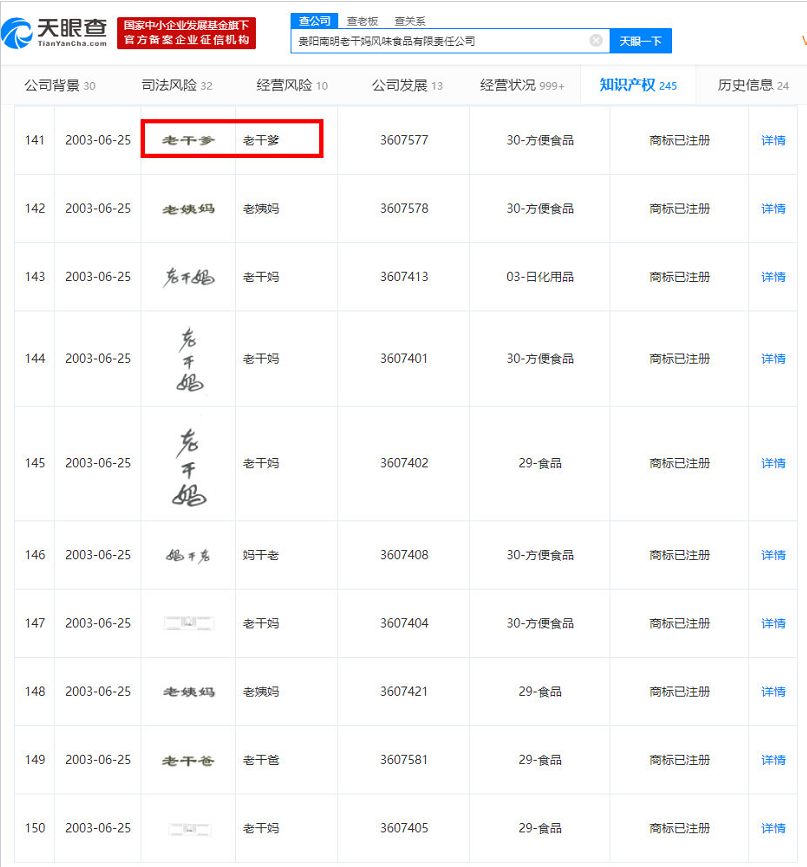 當(dāng)時(shí)老干媽先走出貴州,紅遍大江南北,因受山寨困擾,便把“老干媽”“老千媽”“老干娘”、“老干爹”、“干兒子”……等商標(biāo)都給注冊(cè)了,老干爹無(wú)奈退出市場(chǎng)。