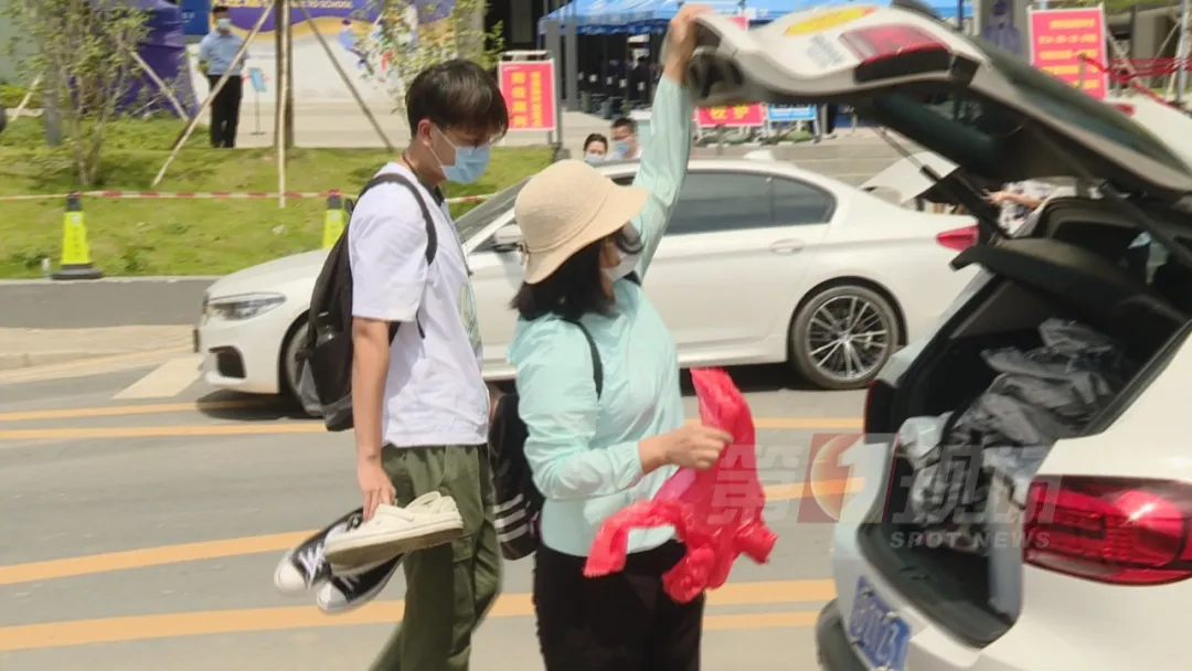 深圳技術大學位于坪山區(qū),離市區(qū)較遠,本地生多是乘坐私家車前來。讀大二的冼晨浩是一名本地生,家住寶安,今天上午,他的媽媽開車把他送到學校。這大包小包的,兩人從車上拿下來不少行李。