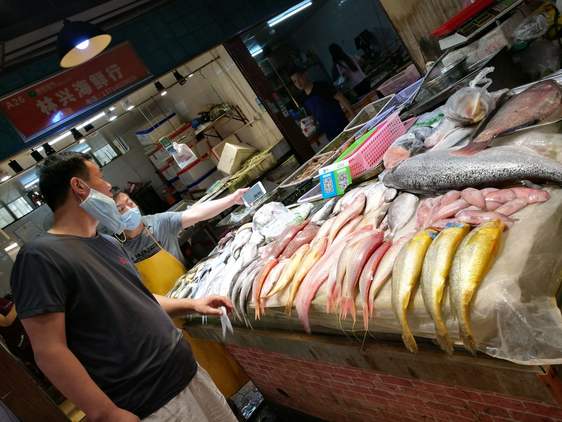 記者站在兩個(gè)攤檔的中間,兩個(gè)檔主一個(gè)向我介紹石斑魚(yú),另一個(gè)向我推銷水庫(kù)鰻魚(yú)。“剛剛到貨的,很新鮮,肉又嫩又滑,一斤才100多元?!闭f(shuō)話間,正在里頭忙活的老公放下手上的菜刀,拿起剛剛切下的石斑魚(yú)魚(yú)肚連鰭部位指向記者:“石斑魚(yú)最好吃的部位,總共也就一兩斤重,看你樣子像老鄉(xiāng),益你?!彼瞎f(shuō)。我還沒(méi)問(wèn)是哪種石斑,旁邊的檔主便一個(gè)勁推銷他的水庫(kù)鰻魚(yú):“我這邊不賣淡水魚(yú)的,是朋友釣到臨時(shí)放在這里賣的,一條十多斤,太難得了?!蔽铱粗~(yú),魚(yú)身厚實(shí),黑到發(fā)亮,但身短,更像鯰魚(yú),便對(duì)檔主說(shuō):“水庫(kù)的魚(yú),得多久才能長(zhǎng)這么大,老妖精了,我可不敢吃!”但光閑聊不買賣可不行,記者隨后在賣石斑魚(yú)的那一灘檔買了一條3斤多重的帶魚(yú),還有個(gè)頭相對(duì)較大的龍利魚(yú),兩種魚(yú)的單價(jià)都是一斤70元。