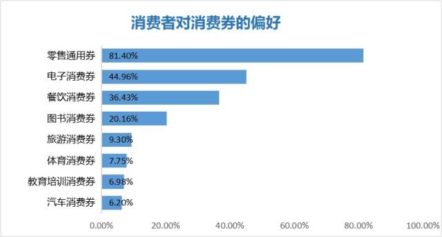 調(diào)研發(fā)現(xiàn),消費券對于促進消費有較大作用。42%的消費者希望拿到消費券,47%的消費者持中立態(tài)度,但表示如果得到了消費券的話更愿意主動去消費。在各種類型的消費券中,消費者喜歡的前三種類型分別是零售通用券、電子消費券和餐飲消費券,消費者選擇的占比分別為81.40%、44.96%和36.43%。