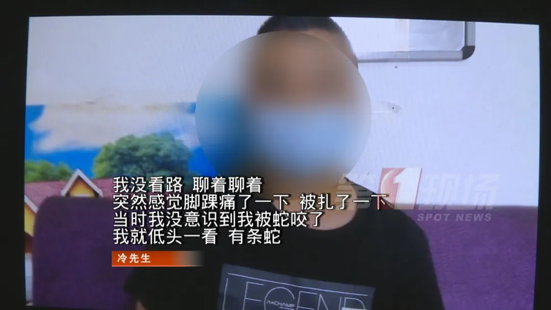 5月21日晚上7點(diǎn)多,市民冷先生和家人吃完晚飯后,獨(dú)自來(lái)到位于坑梓的五馬峰公園散步。他一邊散步一邊跟朋友視頻聊天。剛走沒(méi)多久,冷先生突然感覺(jué)自己的右腳有點(diǎn)不對(duì)勁,有被扎了一下的感覺(jué)。他低頭一看,原來(lái)是被蛇咬傷了。