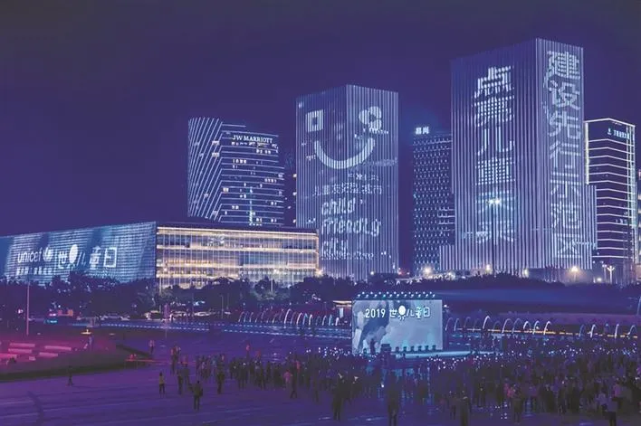 ▲2019年世界兒童日,深圳藍色燈光“點亮兒童未來”。