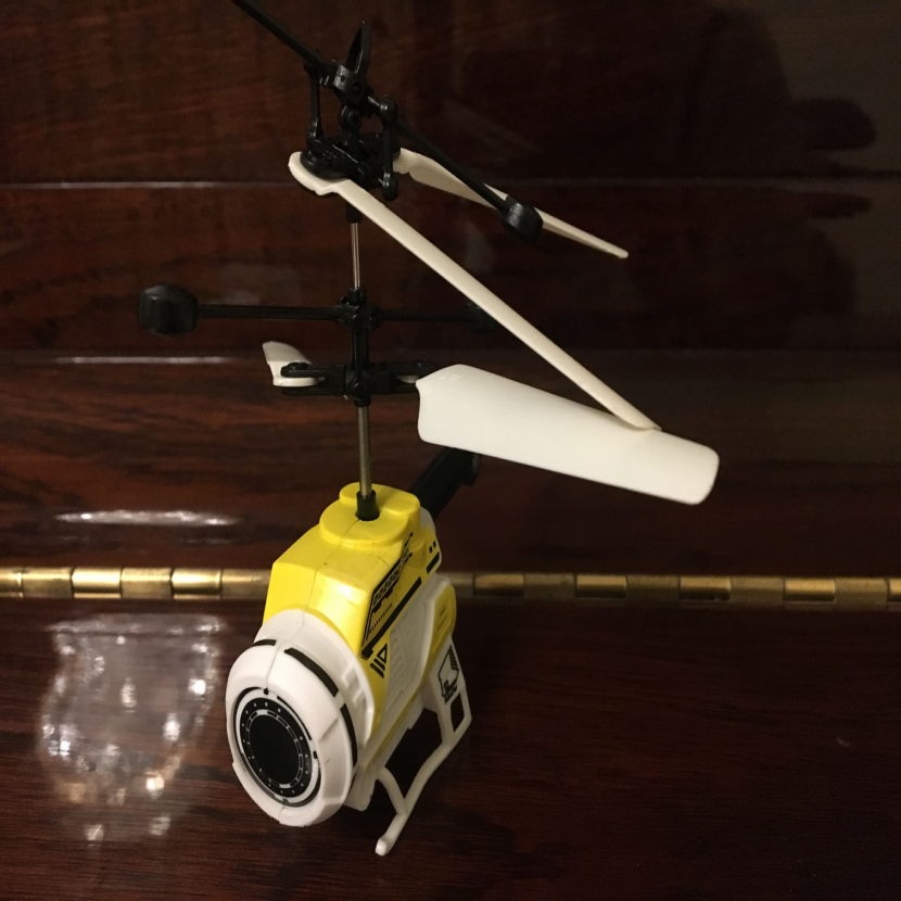 ▲這是我的高科技玩具,感應飛行器,它的機殼上有一個體外紅外線裝置,使它一碰到物體就能自動感應到障礙避開飛行。