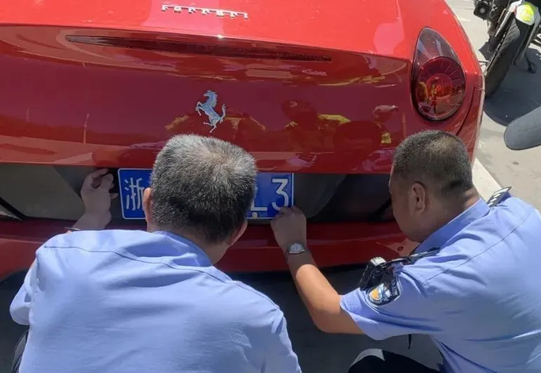 見圳客戶端·深圳新聞網2020年6月28日訊 2020年6月19日,深圳交警寶安大隊接群眾舉報稱:在益田假日廣場停車場有套牌車出沒。接到警情后,深圳交警立即派出鐵騎隊員趕到現(xiàn)場,找到舉報人所描述的一輛紅色法拉利,鐵騎根據(jù)舉報人所提供線索,對車牌號為浙A7****的紅色法拉利進行核查。