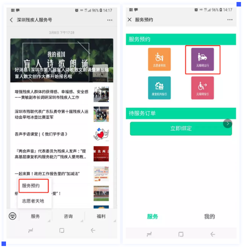 點擊“無障礙出行”圖標進入預(yù)約界面