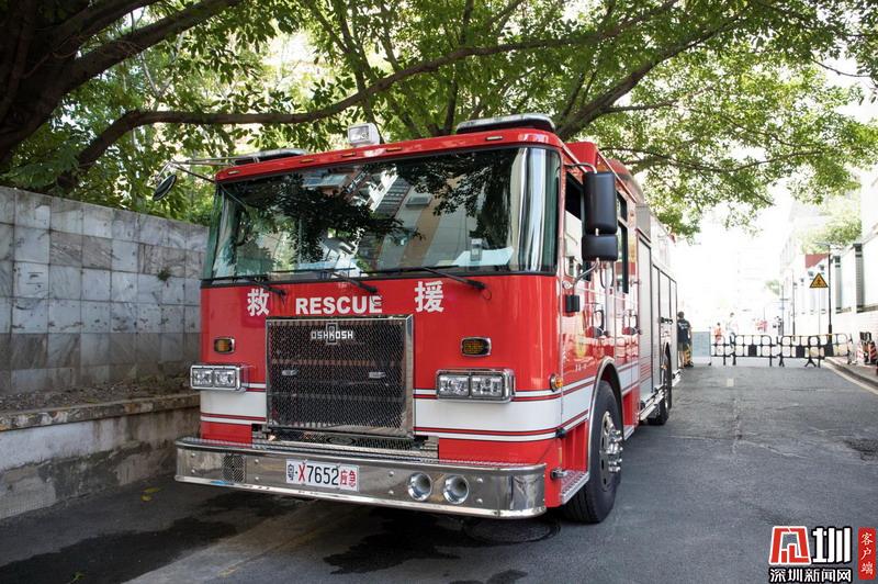 深圳中學(xué)考點外待命的消防救援車。